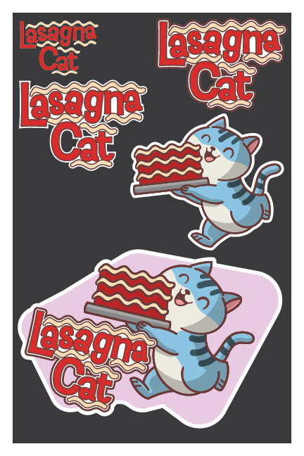 Lasagna Cat is a quirky, cat-themed character born from late-night doodles and a love for food and feline drama. The goal: turn this oddball idea into a real-deal brand with a logo, character illustrations, and a sticker pack that could live on social, in messages, or even slapped on a laptop.